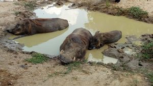 Warthog swimming Lake Mburo Park